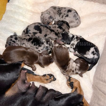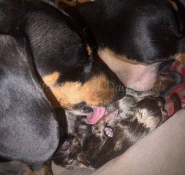 We fell in love with our first black and tan girl (who is now retired) and knew that we would absolutely love the opportunity to produce more exquisite doxies like her, and improve the breed in any way we could. With lots of research, planning, preparation, organization, dedication, and mentorship here we are loving every minute of what we do!
