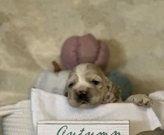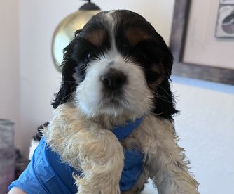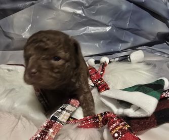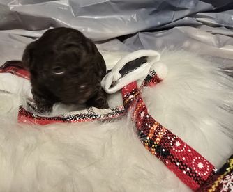 This handsome Toy Poodle male is a stunning brown and white parti with a sweet, outgoing personality. He’s small, affectionate, and loves attention, making him the perfect blend of playful energy and gentle temperament. He carries strong poodle traits—smart, loyal, and easy to train—and has a soft, curly coat that turns heads everywhere he goes.