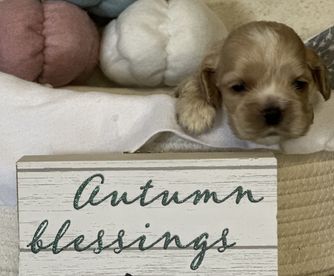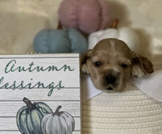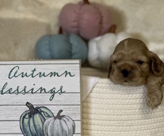 This beautiful Toy Poodle female is a rich, warm apricot with a soft, curly coat and an incredibly gentle temperament. She’s sweet-natured, calm, and loving — the type of girl who bonds closely with her family and enjoys being right by your side. Friendly with everyone, she carries the classic poodle intelligence and an easy-to-train personality, making her a joy to live with.