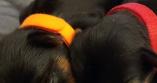 Our puppies include tan and black and gold. Colors will vary depending on the parent dogs.