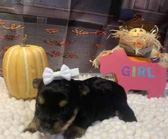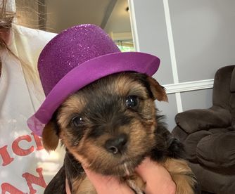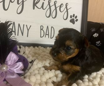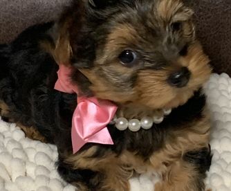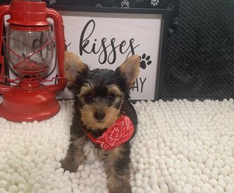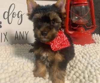 Our Yorkshire Terrier puppies are black and tan. Colors will vary depending on the parent dogs.