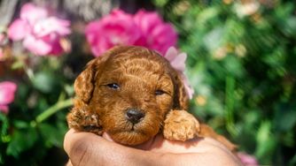 Meet Percy, my sweet and gentle toy Poodle. With his stunning red coat and loving eyes, he's not just a dog, he's a member of the family, whom brings joy and affection to our home.
