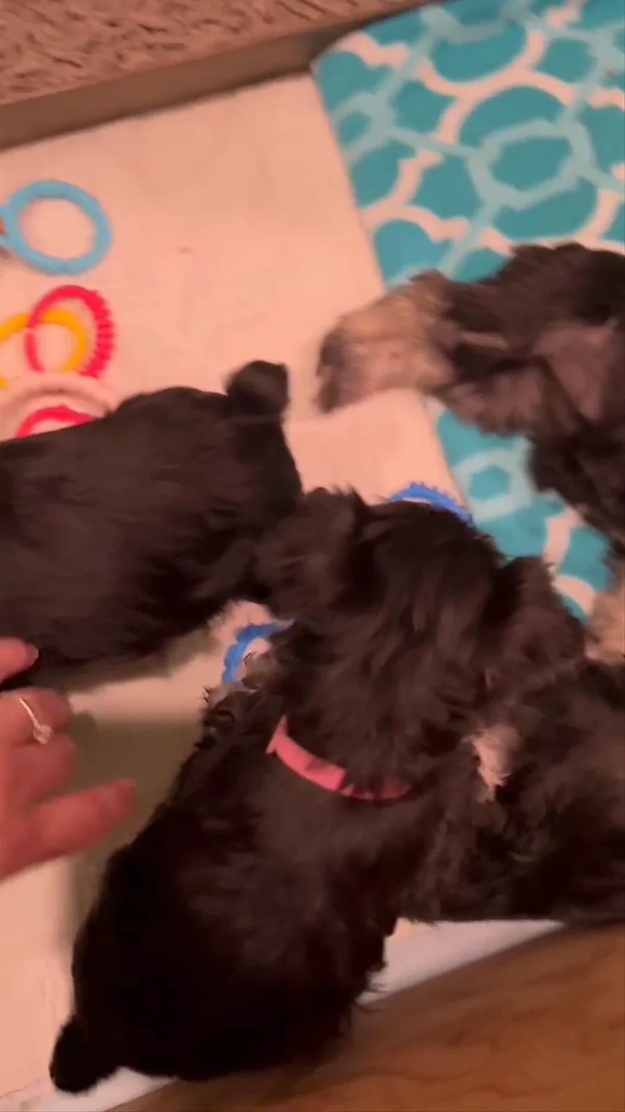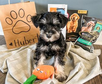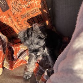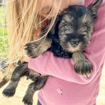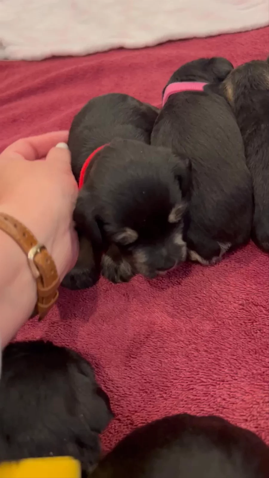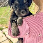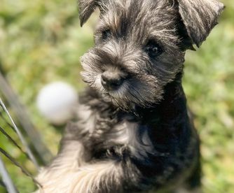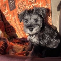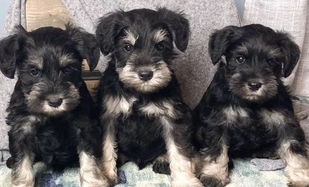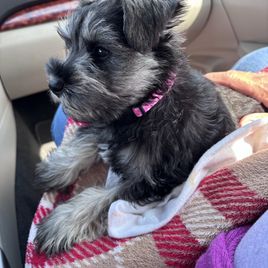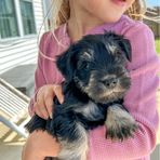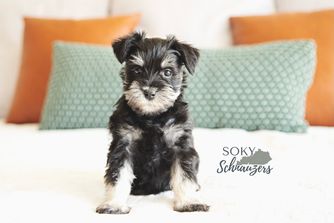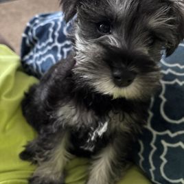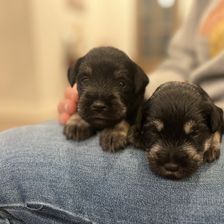 Our puppies include salt and pepper and black and silver. Colors will vary depending on the parent dogs.