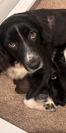 Ditto is a social and intelligent dog. She is very in tune with emotions and is service dog certified as an emotional support dog for an autistic child. Ditto loves her family and is very loyal. She is a velcro dog and always stays around her family. She is the best mom to her puppies and takes care of them well.