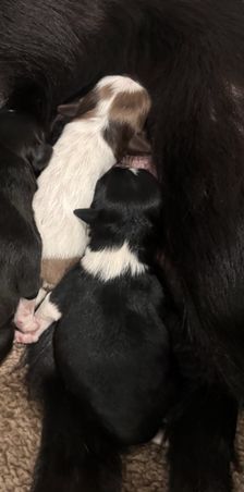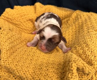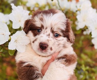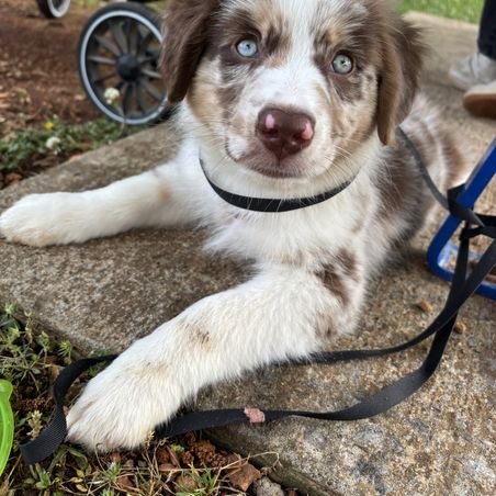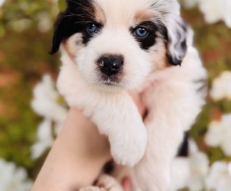 Our puppies include red & white, black & white, blue merle, black tri, and red merle. Colors will vary depending on the parent dogs.