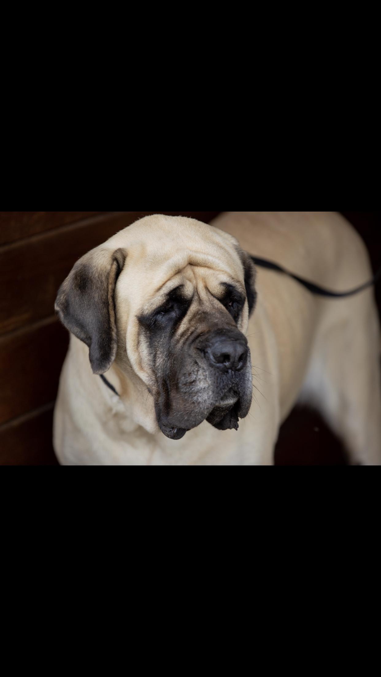 Gabby is a female Mastiff. Carefully selected as a great representative of her breed, Candy decided to make her part of their program. Candy has passed Good Dog’s screening process, which involved a review of their breeding practices, environment, and the mental and physical health of their dogs.
