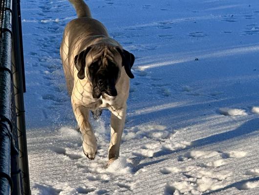 Willow is a female Mastiff. Carefully selected as a great representative of her breed, Candy decided to make her part of their program. Candy has passed Good Dog’s screening process, which involved a review of their breeding practices, environment, and the mental and physical health of their dogs.
