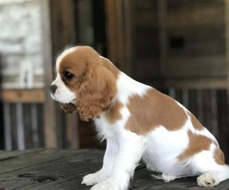 Sadie is a female Cavalier King Charles Spaniel. Carefully selected as a great representative of her breed, Candy decided to make her part of their program. Candy has passed Good Dog’s screening process, which involved a review of their breeding practices, environment, and the mental and physical health of their dogs.