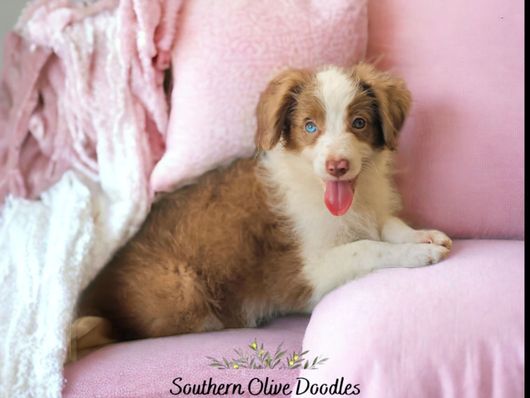 In true Aussiedoodle fashion, she’s incredibly smart and loyal, picking up new things quickly and forming deep bonds with everyone she meets. Karly’s warm personality and sweet spirit make her an exceptional companion and a wonderful part of our Southern Olive Doodles family.