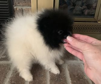 Sable is a beautiful black and white Pomeranian. She weighs 8 pounds and she is CKC registered.