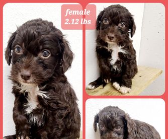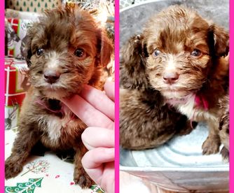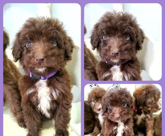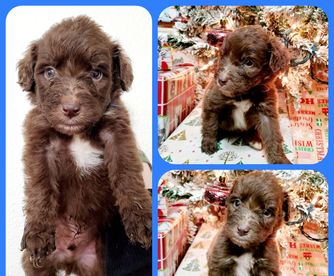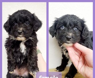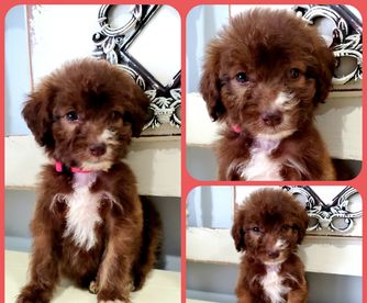 Our Aussiedoodle puppies include toy and mini sizes. Sizes will vary depending on the parent dogs.
