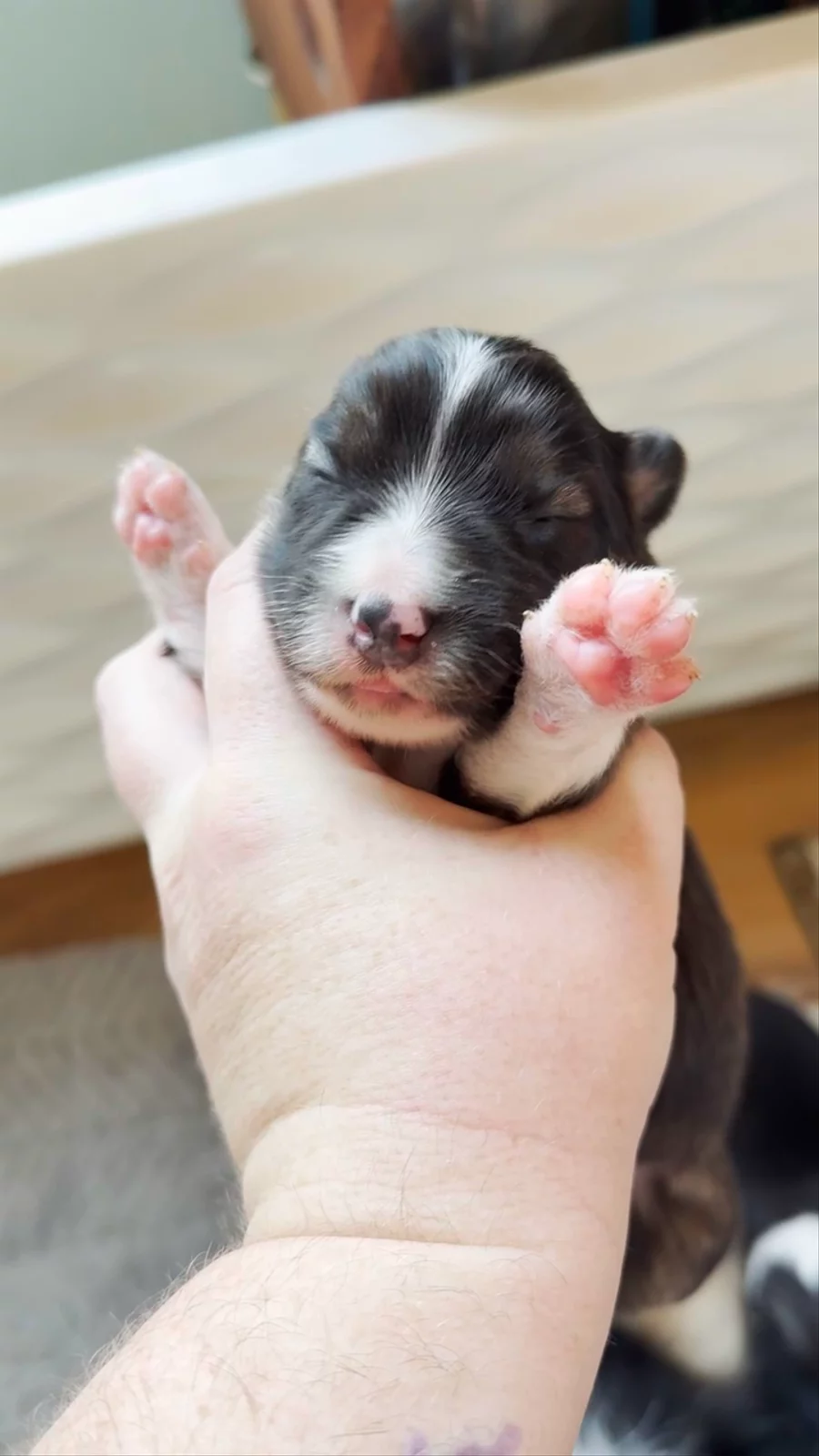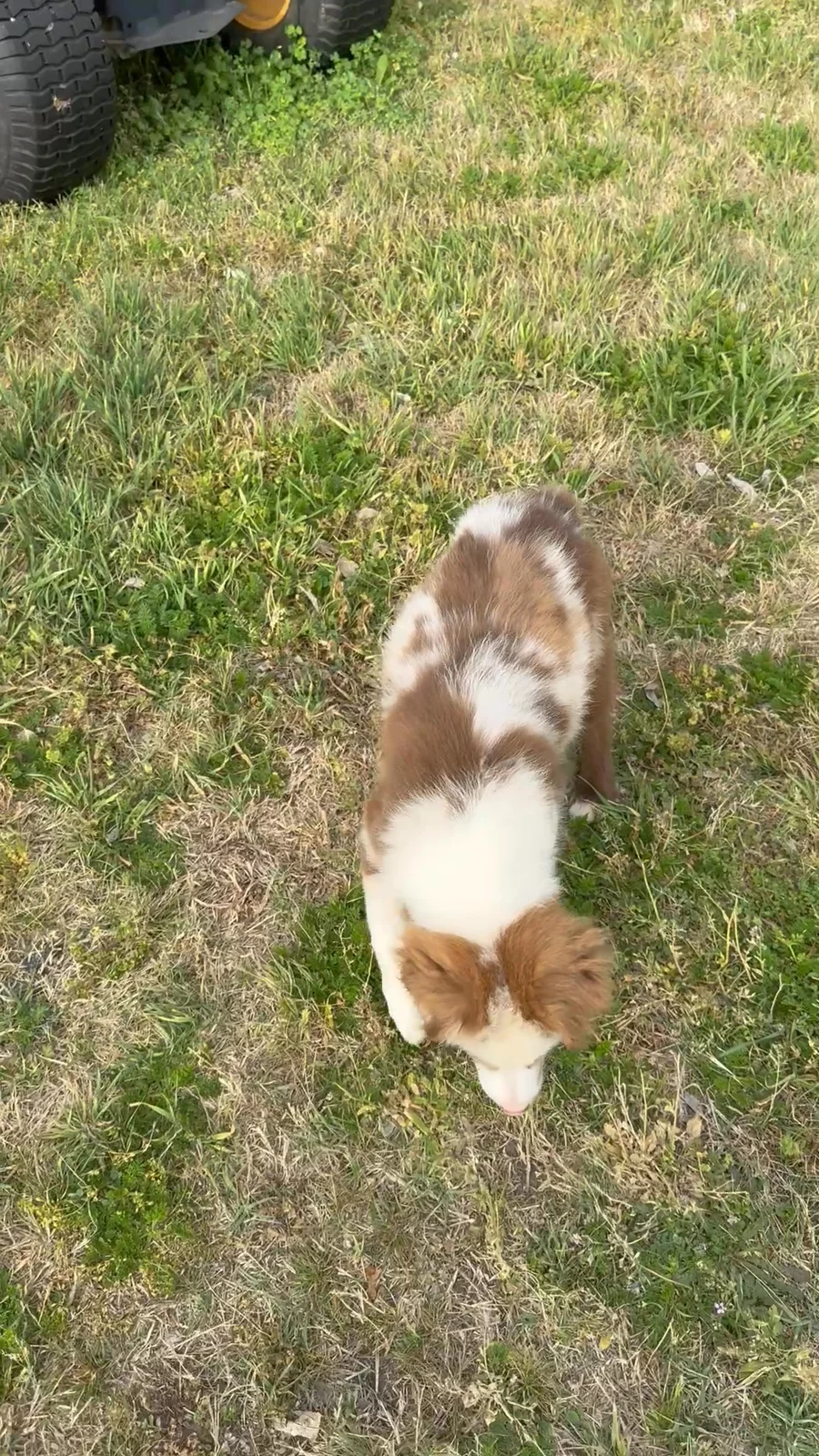 Laramie is a love bug. She just wants to cuddle with you all the time lol. She’s a beautiful small mini at 14.5 in. She has brown eyes and is red factored. Laramie is panel clear except for MDR1. She is m/M223. Cryptic breeds just like a true tri.