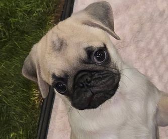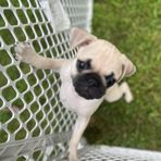 Look at this sweet boy! Oakley (aka Batman) is ready for his forever home. He’s so cute and loves to play and explore. He’s got a cute face and loves to run. His features are more similar to the traditional pugs when they first were being bred. He’s a full bred pug with high pedigree in his bloodline. He’s AKC registered, healthy, up to date on vaccines, deworming and flea and tick treatments. He is doing great with potty training and sleeps through the night.