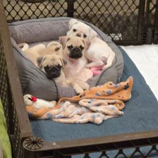 “Our pugs come from a line of pure bred AKC registered healthy pugs. They are loved and cared for by both our family and our local vet. The Apricot colored pugs are more rare but are registered as fawn with AKC.”