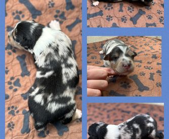 Our puppies include red & white, black & white, red merle, blue merle, black tri-color, and red tri-color. Colors will vary depending on the parent dogs.