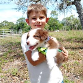 I'm Preston and Kelsey R., the breeder behind Southern Sky Aussies located in Valrico, FL. Our dogs are raised in our home with our children. We raise them as part of our family so they are well equipped to be a great addition to your family :).