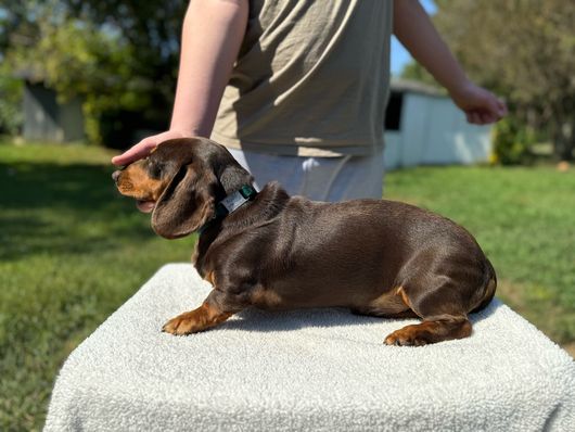 Jovie is an amazing puppy! The communication and kindness from Ashley were great. I would recommend to anyone wanting a beautiful mini dachshund puppy!