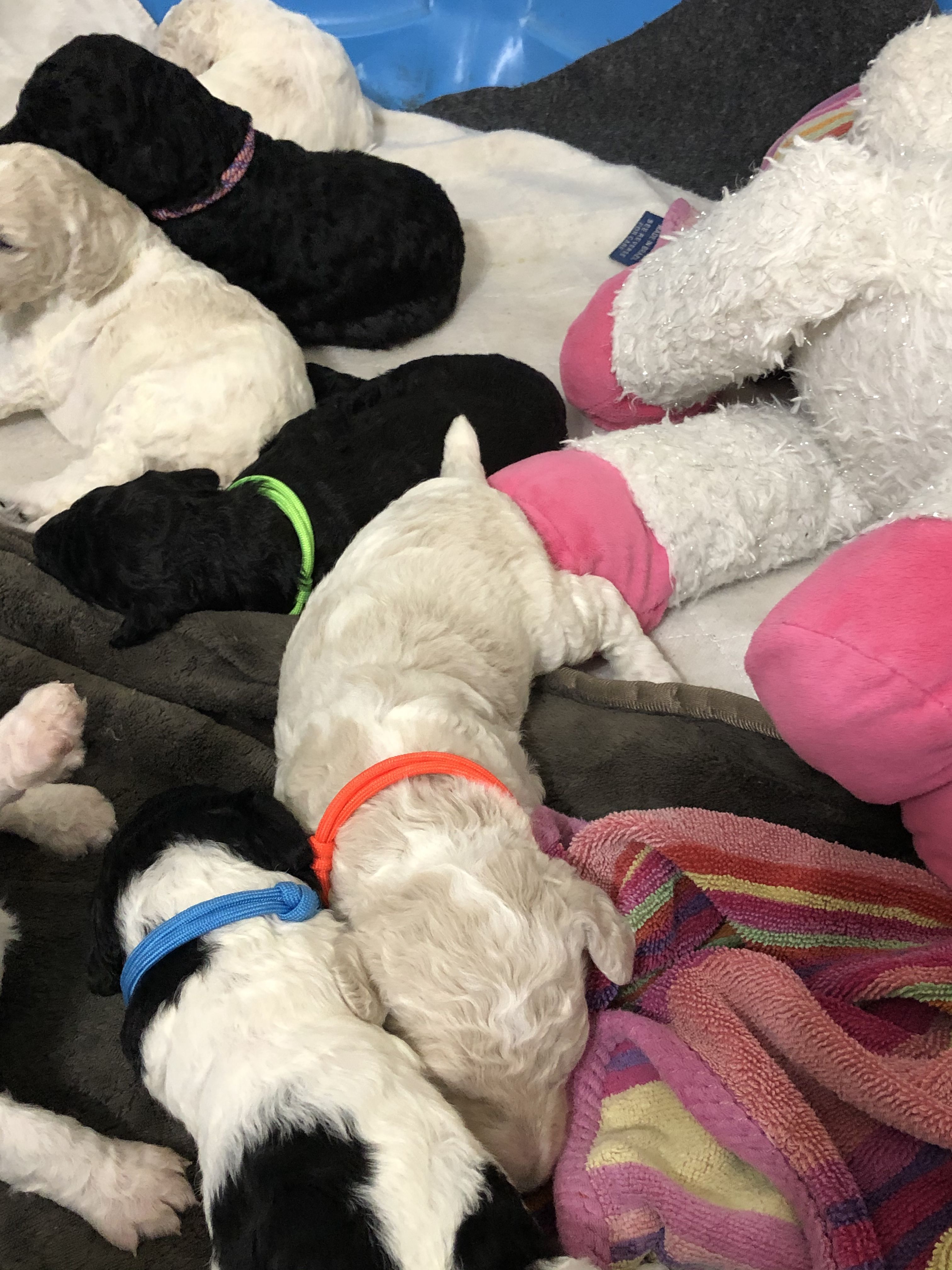 Our dogs are raised inside our family home with our young kids. We strive for the best temperament for all our dogs. They get plenty of socialization and handling from a young age. Grooming starts early so puppies go home already used to brushing, regular nail trimming, used to the grooming table, and exposed to the clippers. We follow Puppy Culture