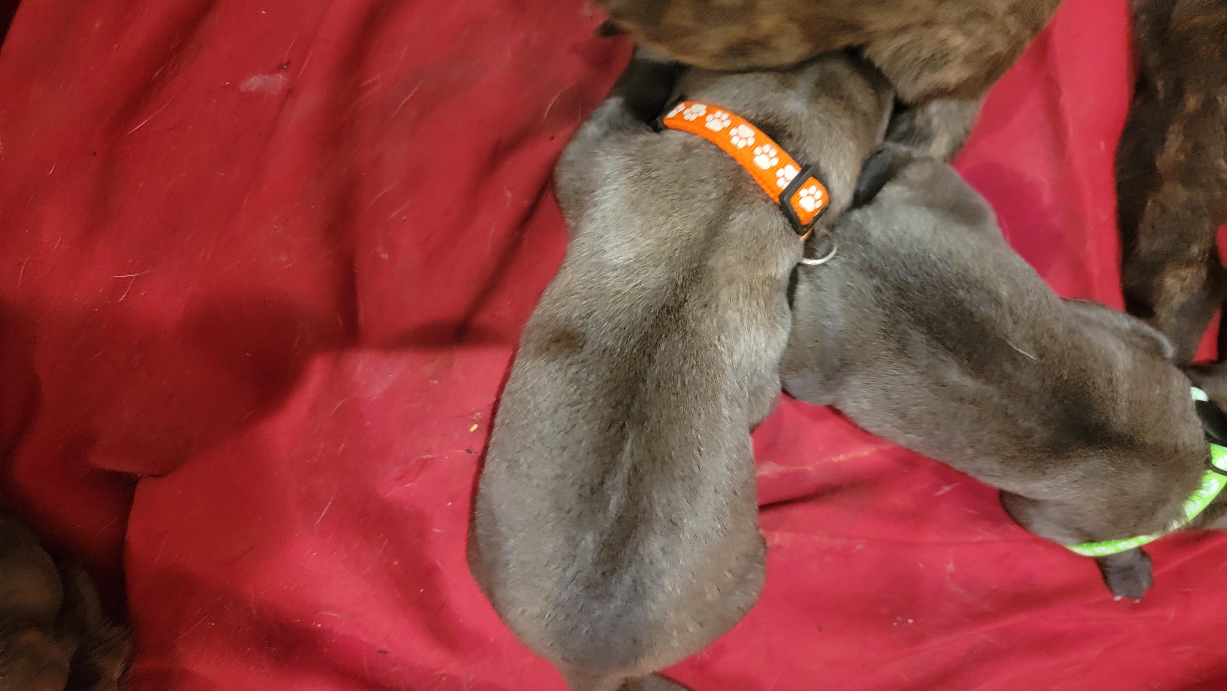 Our puppies include apricot, fawn, and brindle. Colors will vary depending on the parent dogs.
