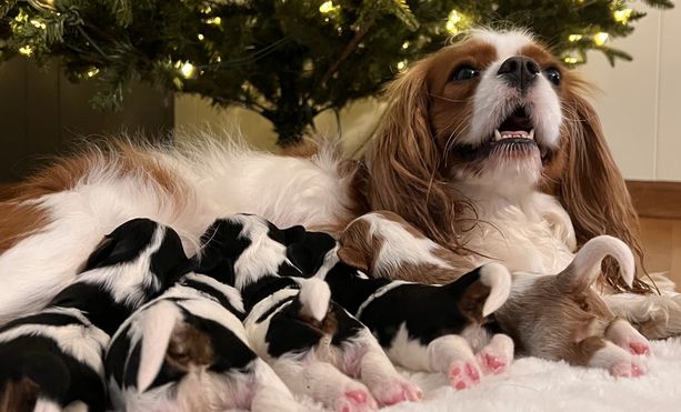 Our puppies include blenheim and tri-color. Colors will vary depending on the parent dogs.