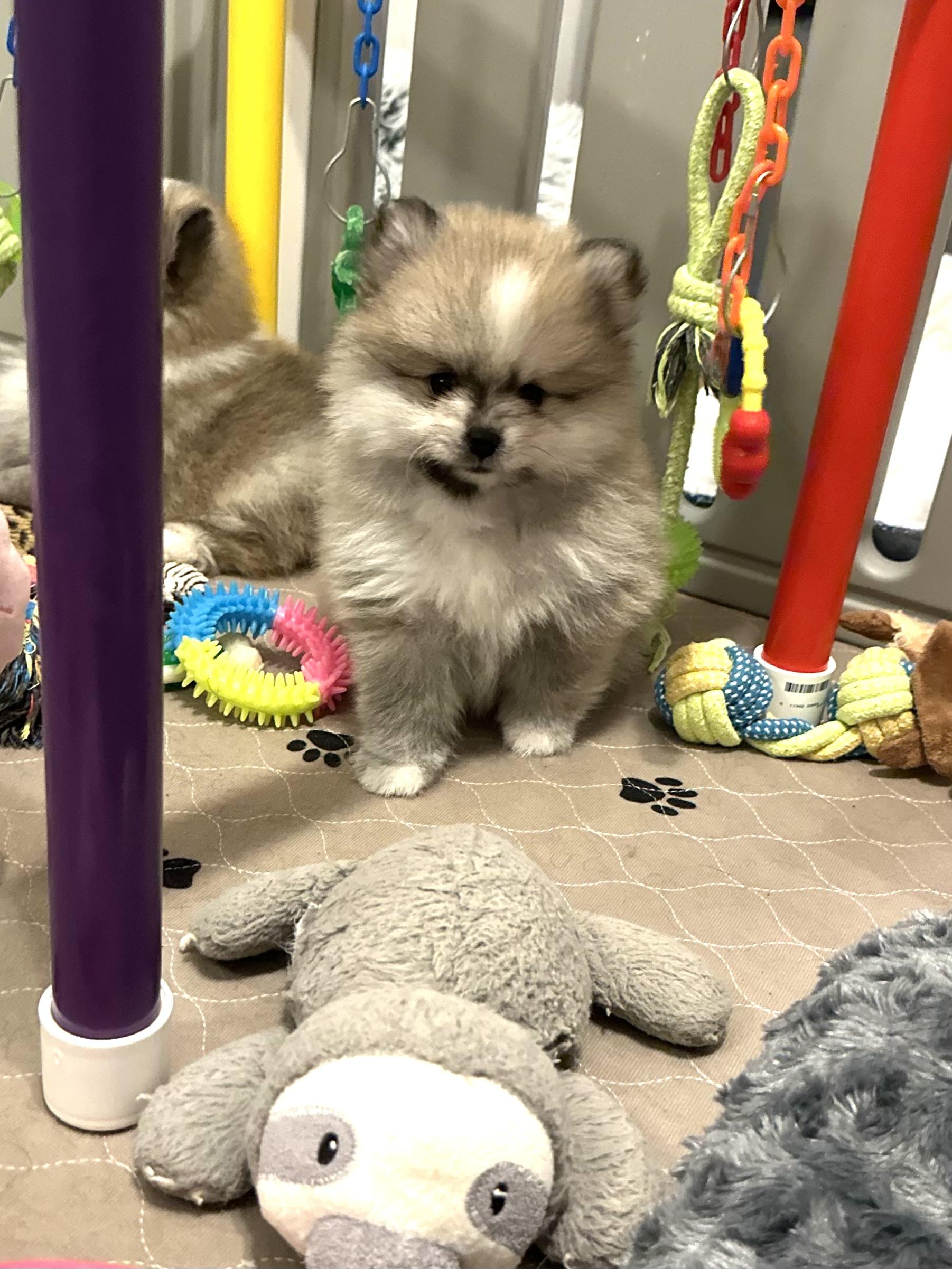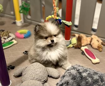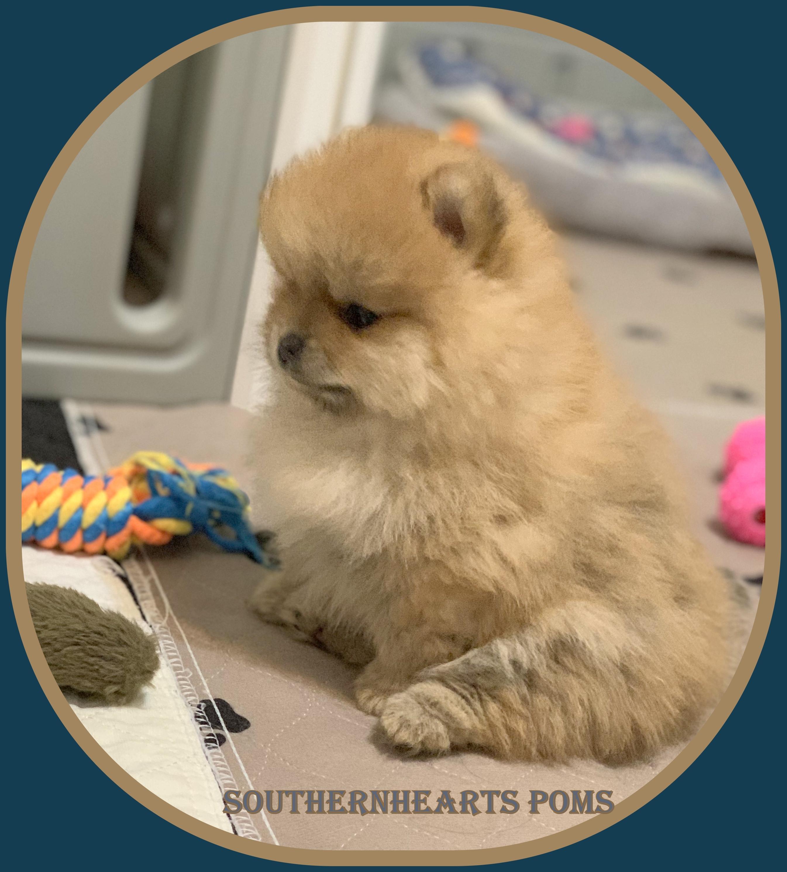 We are having such a fun week here at SouthernHearts Poms with this precious and goofy crew! They keep me on my toes but mostly keep me laughing! We have been working on commands a bit more this week and they most have sit, wait and shake down pat! They act like they are all trying to hurry to do what I ask so they can be first! LOL! Just makes my heart smile!! The entire litter is so loving and calm but still with those Pom tudes we all love! Ha! Coats to die for!! I can’t wait till they actually grow a hit and their features get a tiny bit larger so you can see how gorgeous this crew is from the pics I post! Hahaha! They are for sure a special litter!! I have my eye on one to stay here with me! I think he will be a wonderful lil contributor to my goals here! ❣️❣️🐾. They all will make wonderful loving and gorgeous pets for their families!….. except for whoever I choose! Hahaha! Today is brushing/grooming day! I also will be doing an intro to their fun puppy activity center! This helps create balance, coordination and muscle all while having fun! Message me about any of these lil bears! I would love to chat with you!