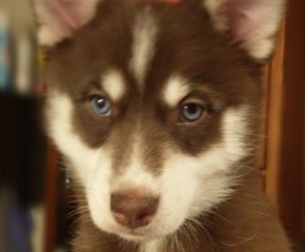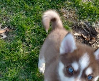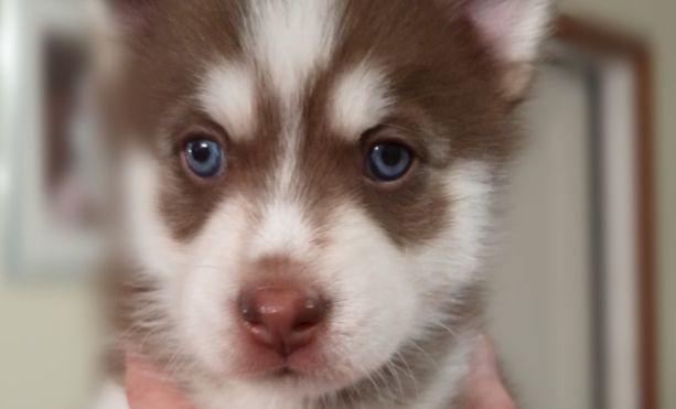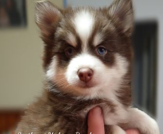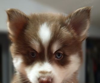 Beautiful Chocolatey Red & White Pomsky