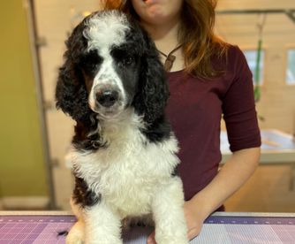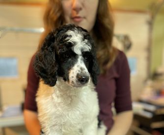 Michelle was Very responsive when we approached her about a new puppy she listed. ( other sellers on other websites were Less than communicative ) Michelle also interviewed us to see if she felt we were a good match for our aptly named Wildfire. This gave us both a chance to get to know Michelle a bit, which gave us confidence, but also let us learn that she was both watchful and responsible about her litters. We collected Wildfire as soon as it was approved, driving to NH on a brilliant, crisp day when we met our Wild Wonder. Seeing Wildfire with her dog mother was very touching: they were clearly bonded and Mom was sad to see her girl leave, nuzzling her as we spent transition time in the grooming room at SP Standard Poodles. This was rich for us because we felt part of the extended family. I’ve had a couple of questions since Wildfire came to us, and upon asking Michelle, we found her responsive, helpful and kindly. Wildfire is only the second puppy I have had since whelping, and her name is deserved: she’s a blunderbuss for energy, but came to a Very loving home. We lost our previous pup Way too early, but waited to make peace in our hearts before reaching out for another dog. Frankly I’m glad the other people I contacted ( again, on other websites ) were not responsive. We really enjoyed the experience of meeting Wildfire’s dog- and human-moms and feel the charge to care for her as they would. Thank You, Michelle and Good Dog. Everyone has come out ahead on this transition: Wildfire receives silly amounts of love every day, we have the privilege of offering that love, and if we were to ‘run aground’ in some way, we know that Michelle will counsel us as best she can. We are Most Happy.