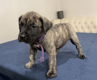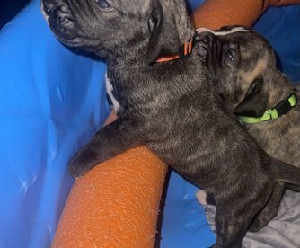 Our puppies include black, fawn, and tiger. Colors will vary depending on the parent dogs.