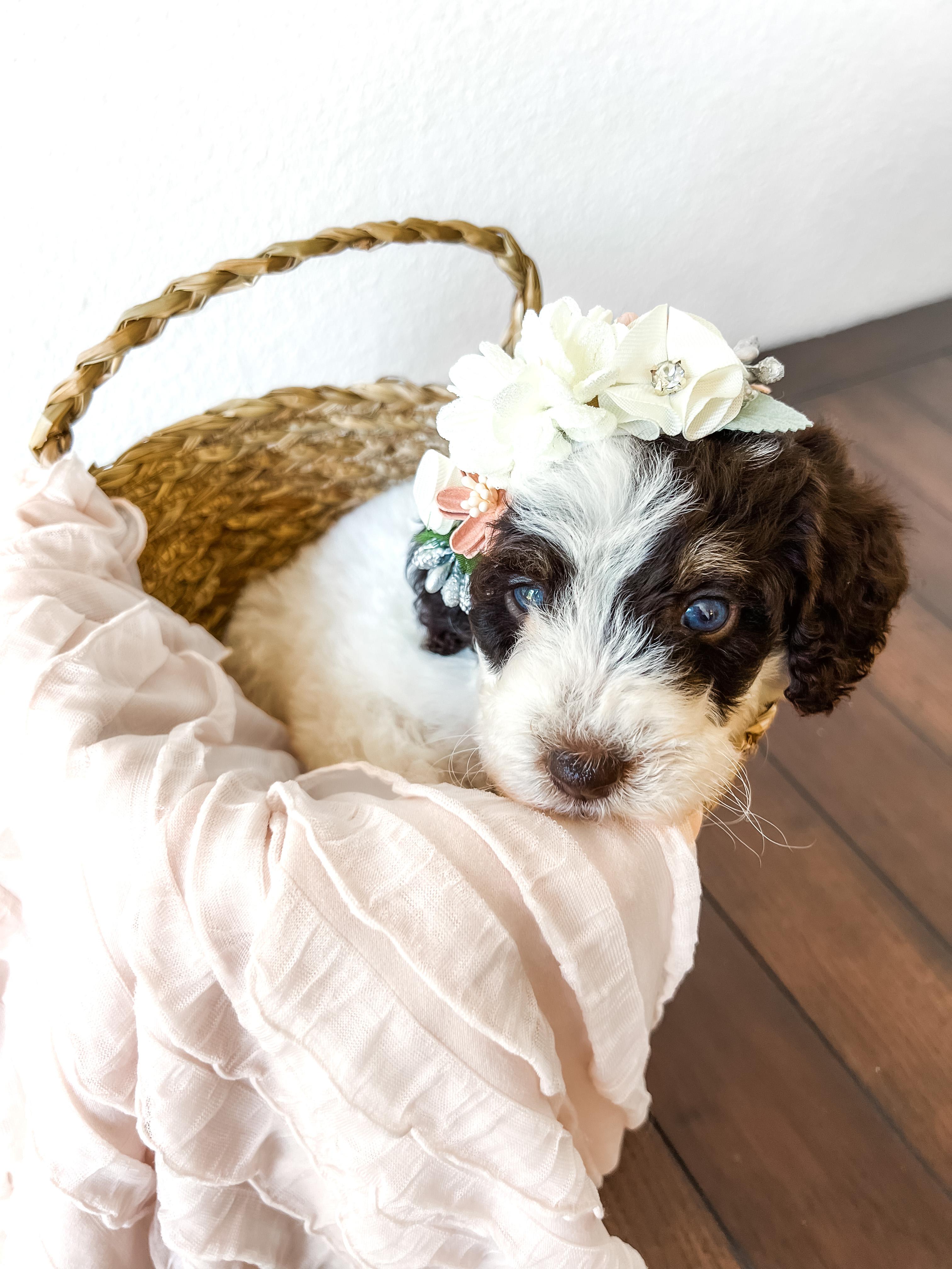 “Our puppies are born, raised, socialized & trained by our family of 7. Each puppy comes with a 1yr health guarantee, are dewormed, microchipped and puppy care package. The are examined by a licensed veterinarian, given their first set of vaccinations and Florida health Certificate. Deposits are non-refundable & applied to the total amount due. In the event a puppy cannot be delivered due to unforeseen circumstances, deposit may be transferred to future litter waitlist and/or Space Coast Doodles may refund at their discretion.”