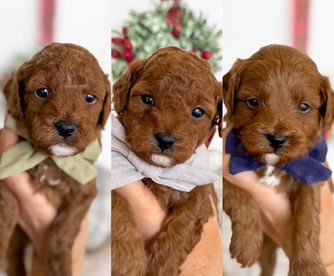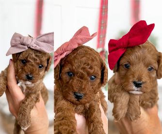 Our Goldendoodle puppies include petite, miniature, and medium sizes. Cavapoo puppies include toy and miniature sizes. Sizes will vary depending on the parent dogs.