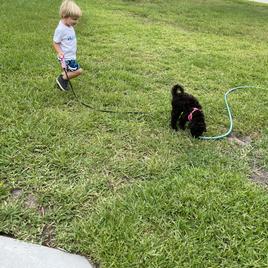 Working with Space Coast Doodle Co was a pleasure. Kara sent pictures of Cody as we anxiously awaited for him to be ready to come home with us. When we got home we had a happy healthy puppy ready to learn all types of things.