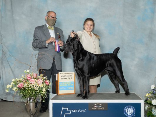 Isabella is a female Cane Corso. Carefully selected as a great representative of her breed, Joyce decided to make her part of their program. Joyce has passed Good Dog’s screening process, which involved a review of their breeding practices, environment, and the mental and physical health of their dogs.