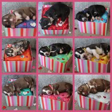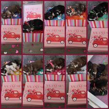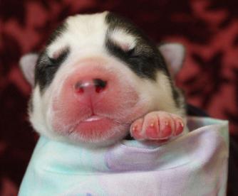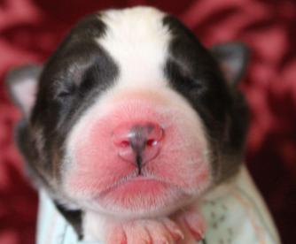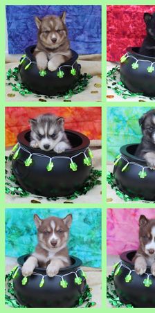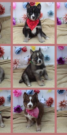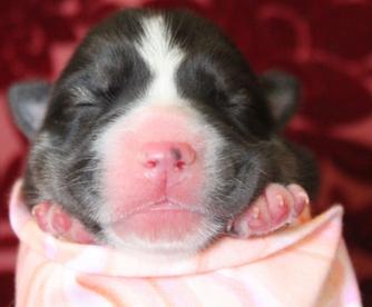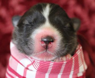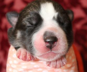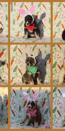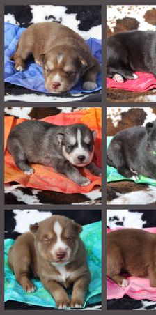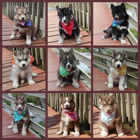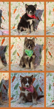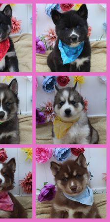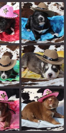 Our puppies include red and white, gray and white, black tan and white, black and white, and agouti and white. Colors will vary depending on the parent dogs.