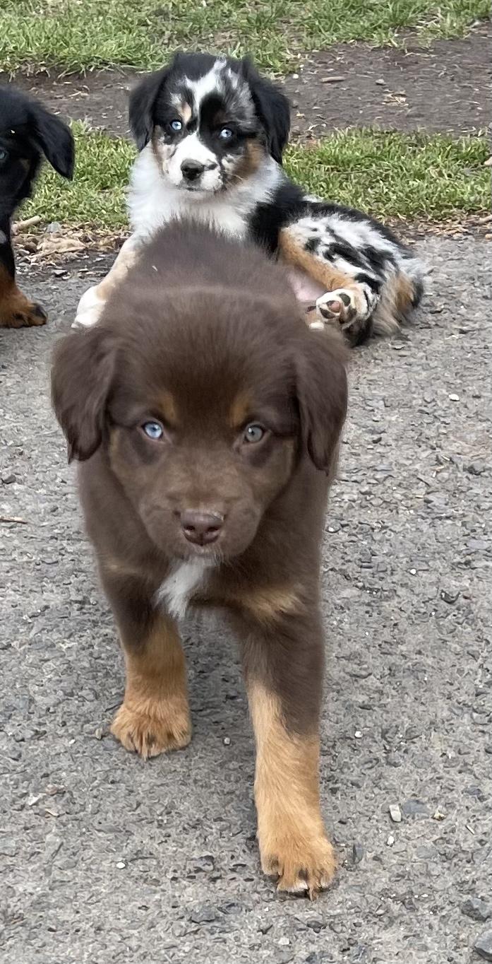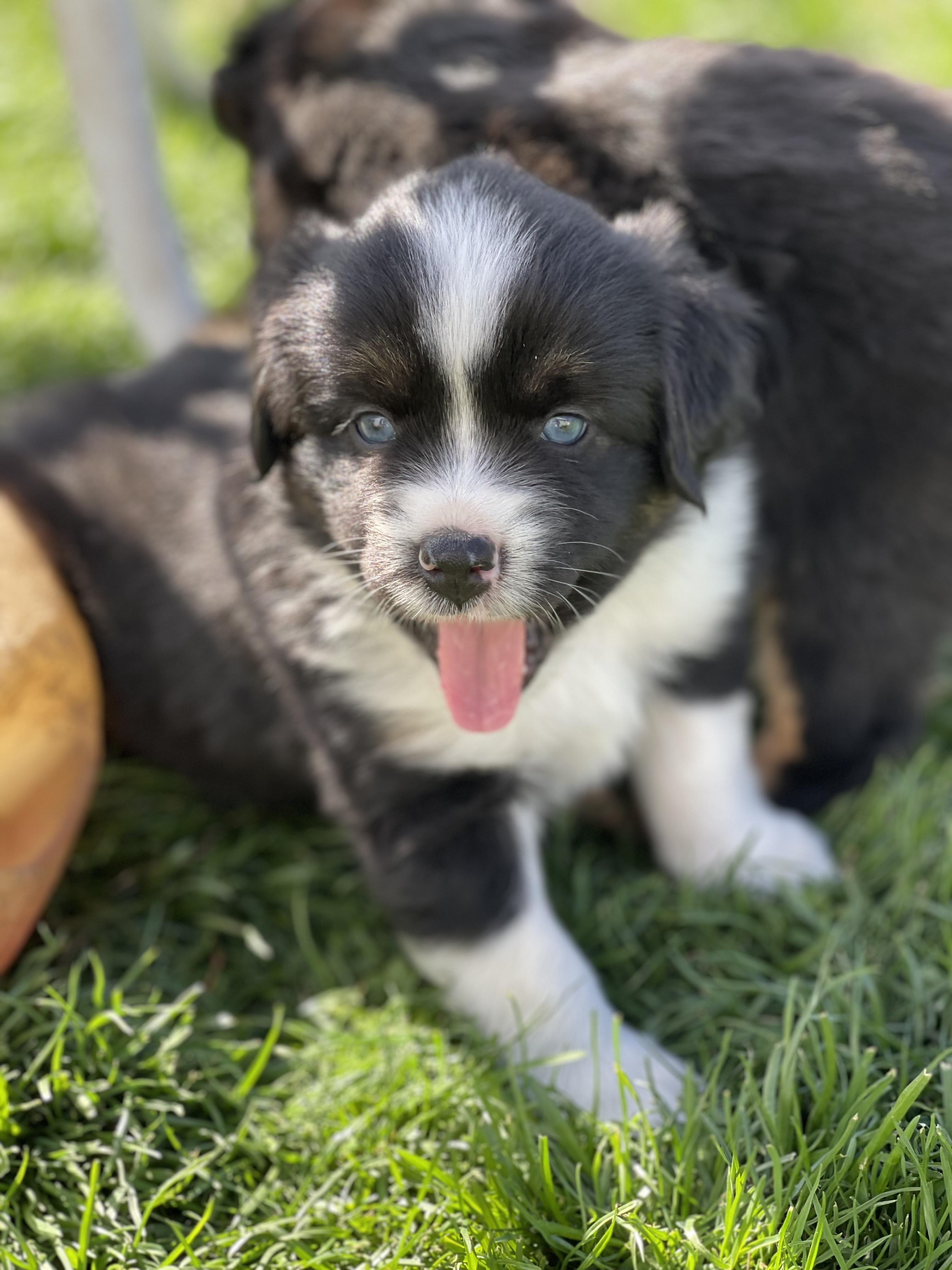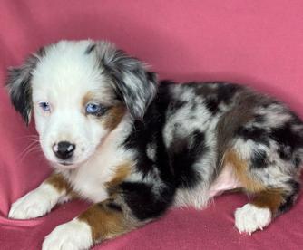 Our Miniature American Shepherd puppies include red & white, black & white, red tri-color, black tri, red merle, and blue merle. Toy Australian Shepherd puppies include black tri, blue merle, red merle, and red tri. Colors will vary depending on the parent dogs.
