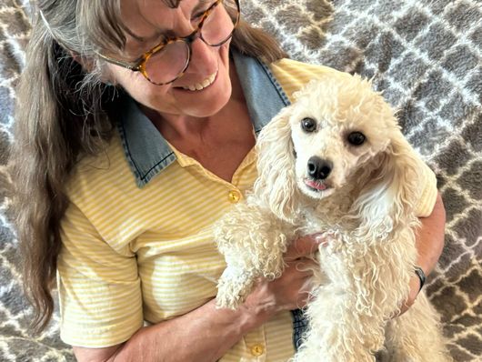 Wren is a female Poodle. Carefully selected as a great representative of her breed, Debra decided to make her part of their program. Debra has passed Good Dog’s screening process, which involved a review of their breeding practices, environment, and the mental and physical health of their dogs.