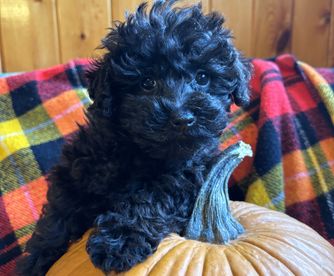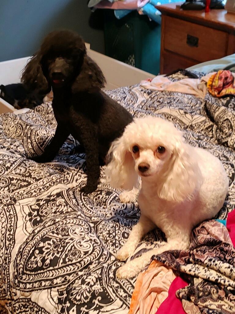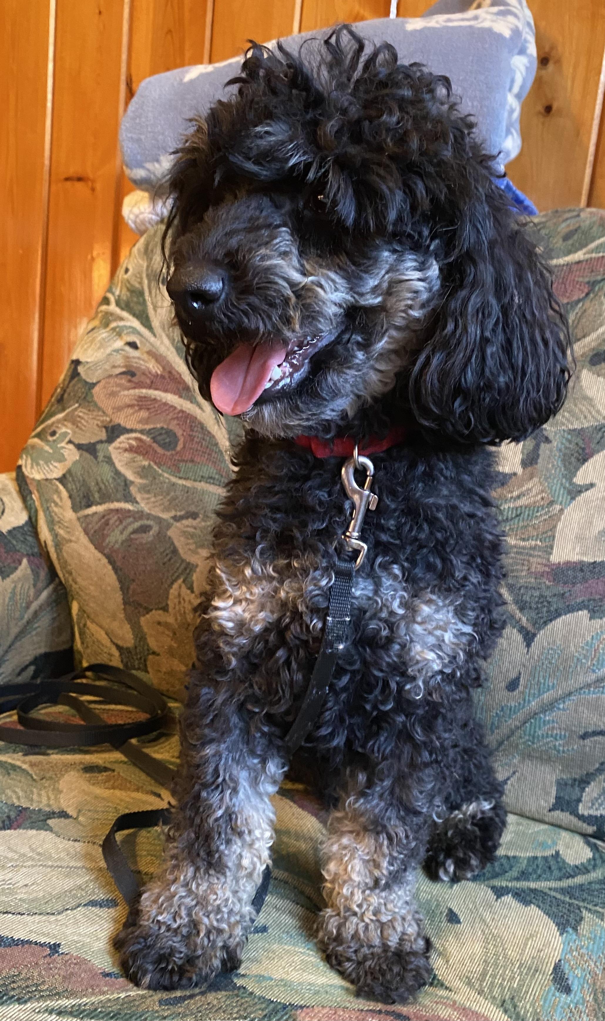 Waffles is a beautiful black poodle with a quiet, gentle temperament. She loves cuddling.