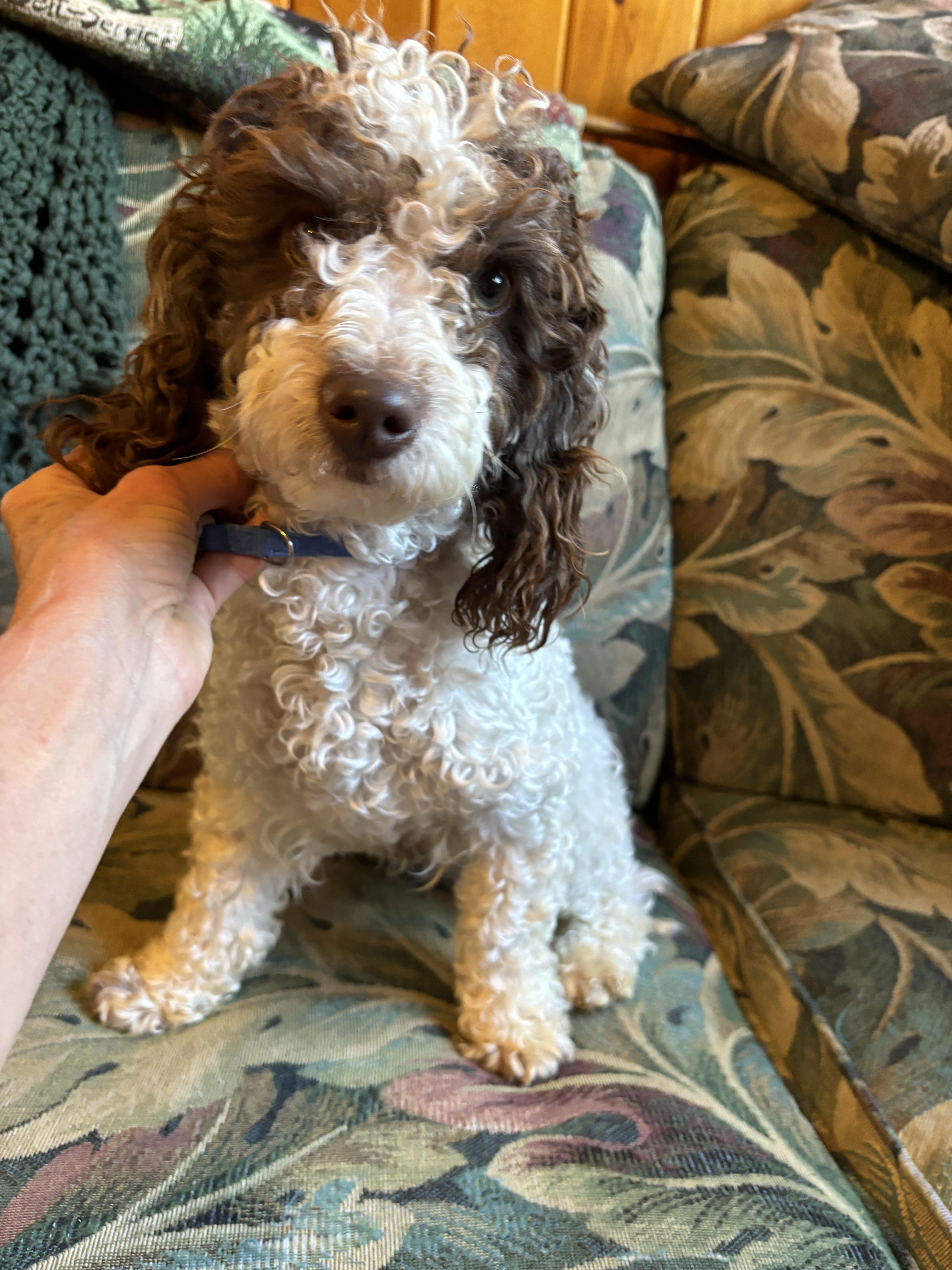 Jamie is as spunky little poodle guy who loves attention. He is a beautiful parti color- white with brown spots.