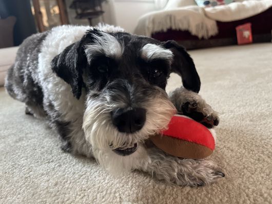 Chip is an amazing schnauzer who is very obedient and full of life. He loves walks, running and hiking. He loves to cuddle in endings.
