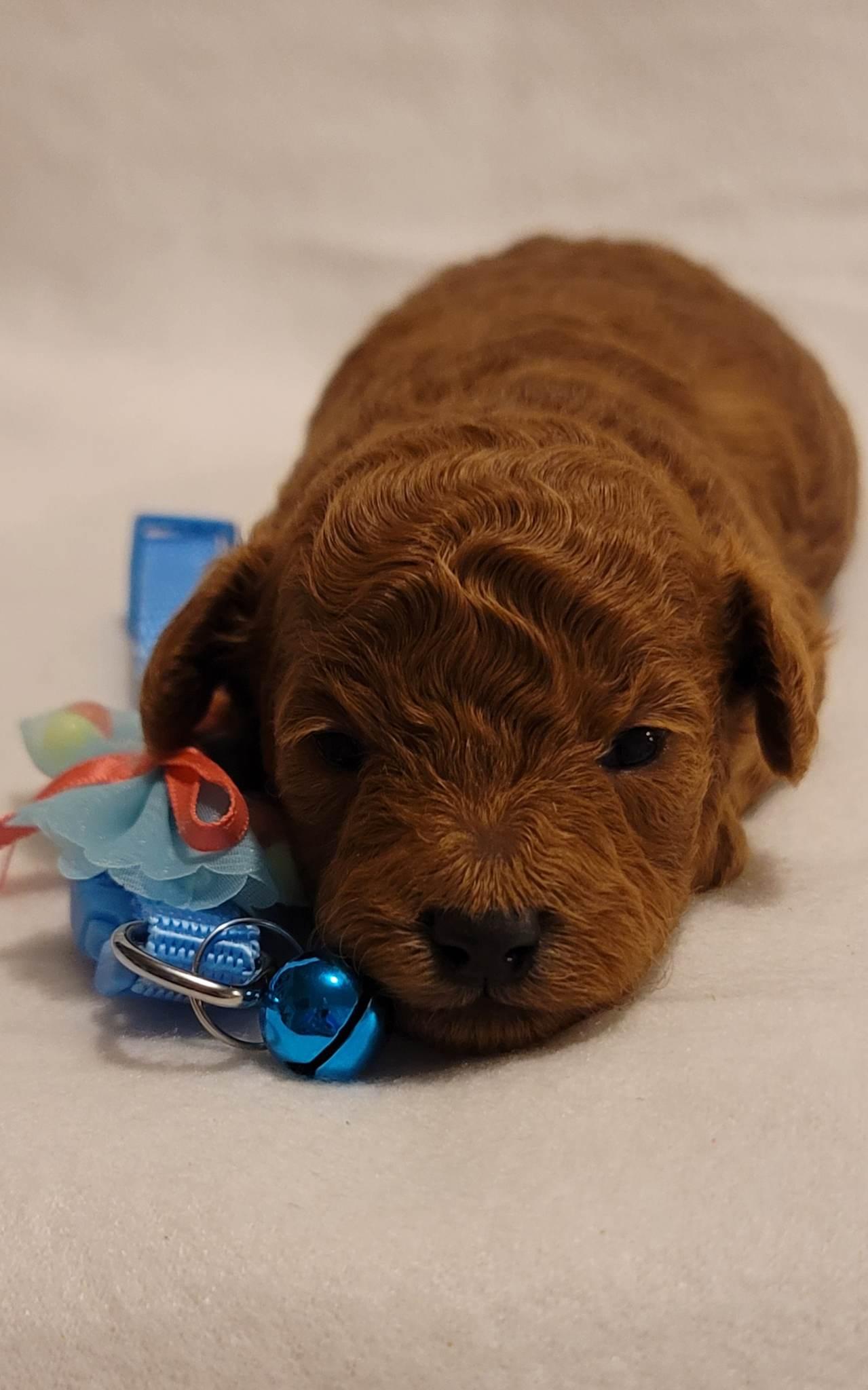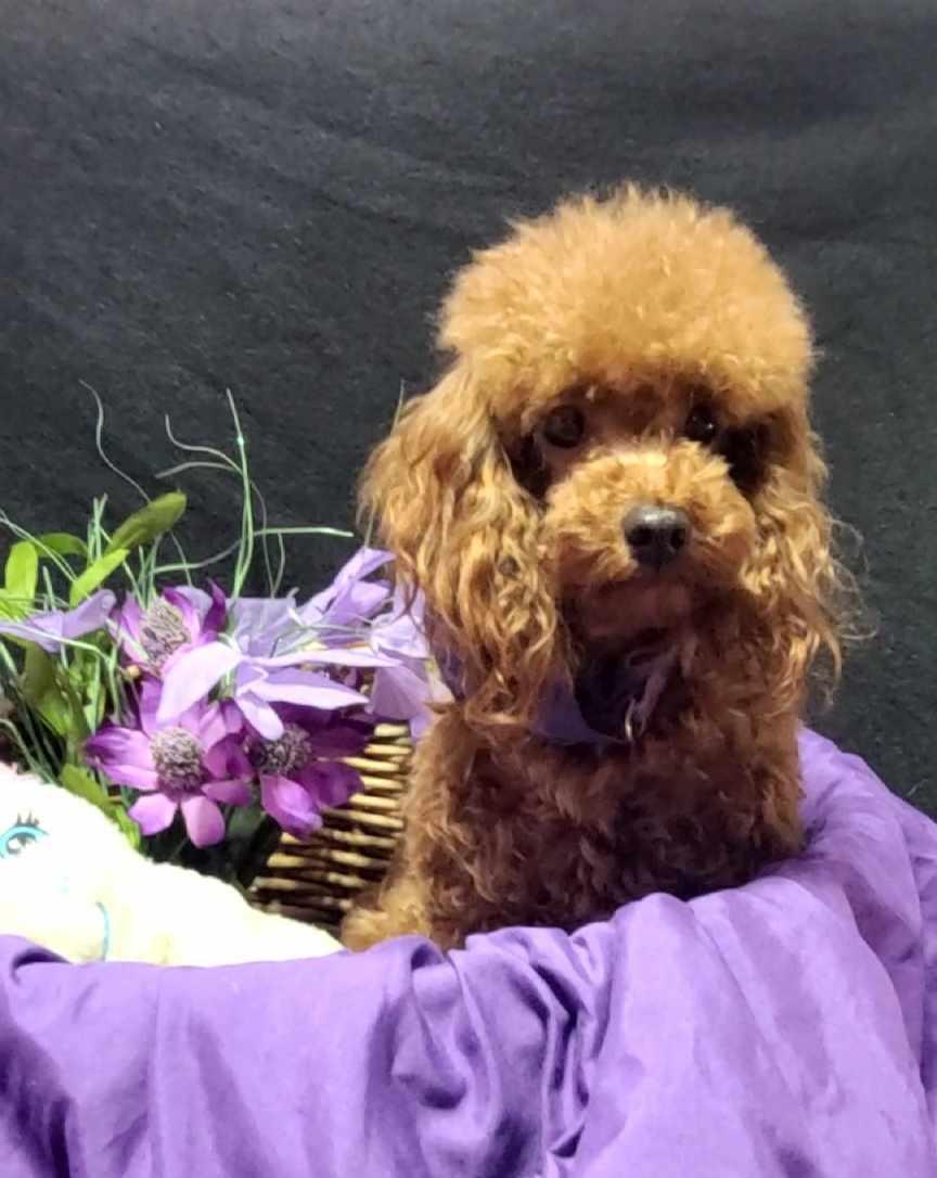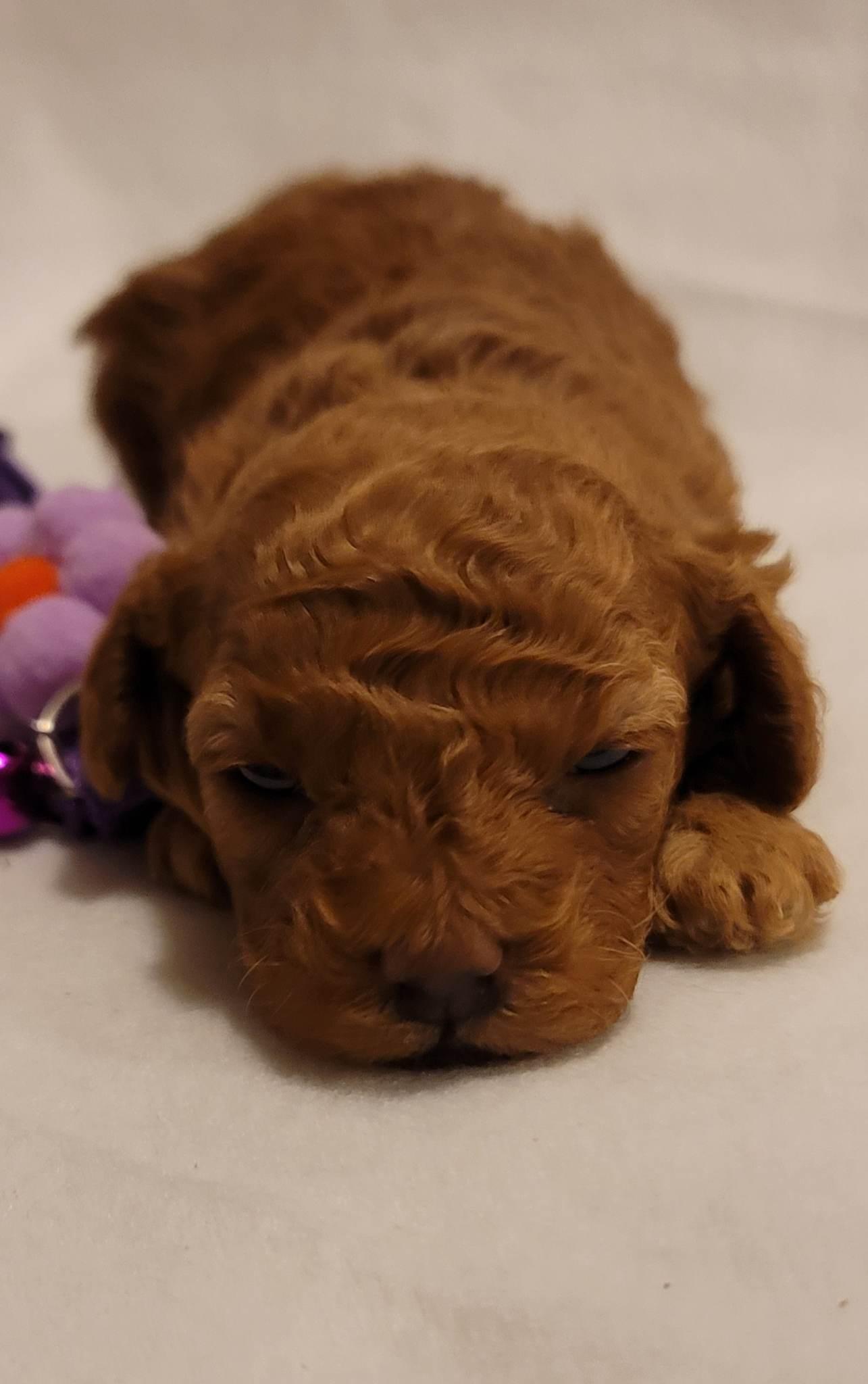 Fireman is a precious tiny tiny boy who still looks like a puppy. He has the sweetest loving personality and prances as he walks like he is king of the world. He is a beautiful dark red and produces tiny pups