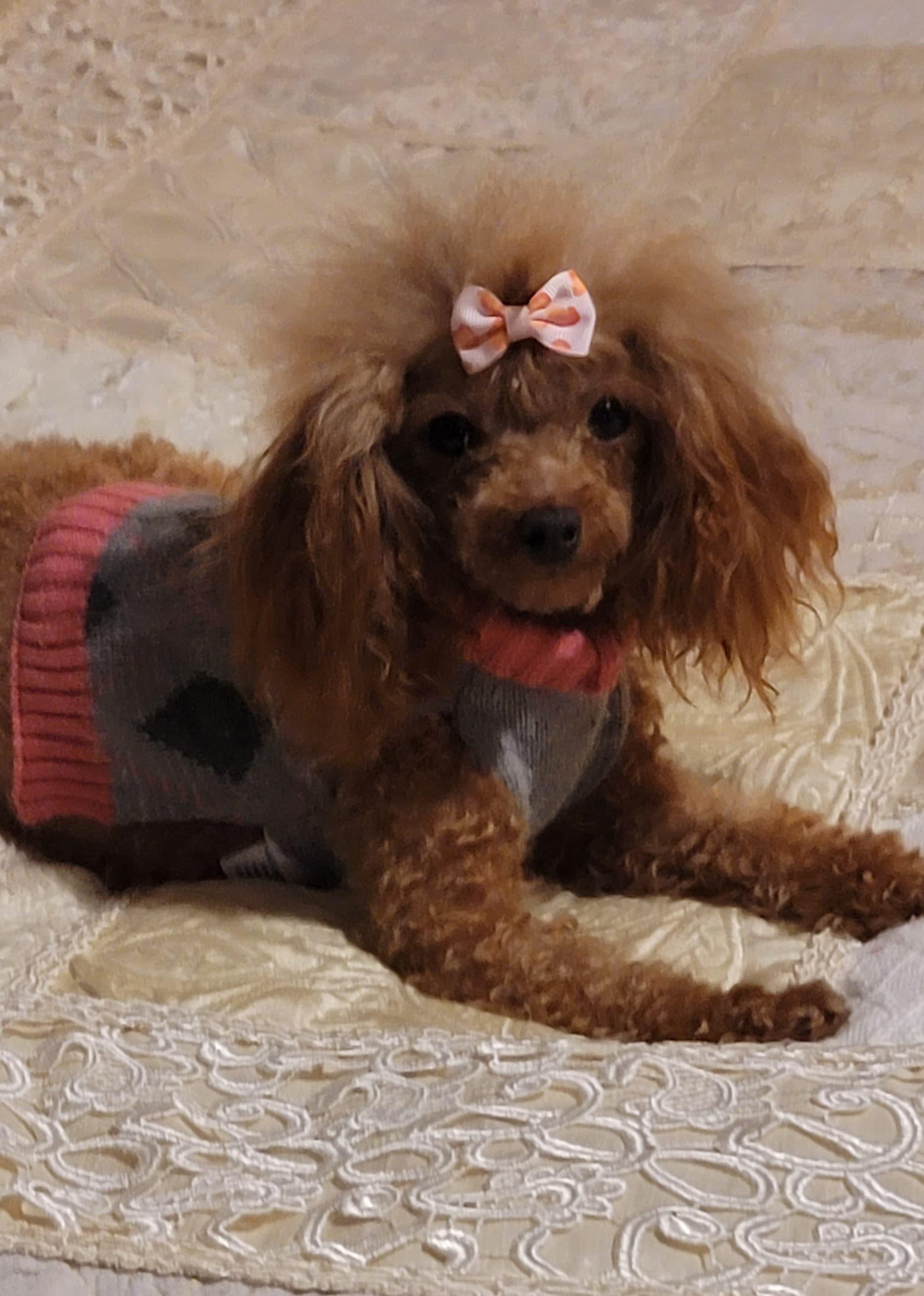 Spice is a female Poodle. Carefully selected as a great representative of her breed, Joseph decided to make her part of their program. Joseph has passed Good Dog’s screening process, which involved a review of their breeding practices, environment, and the mental and physical health of their dogs.