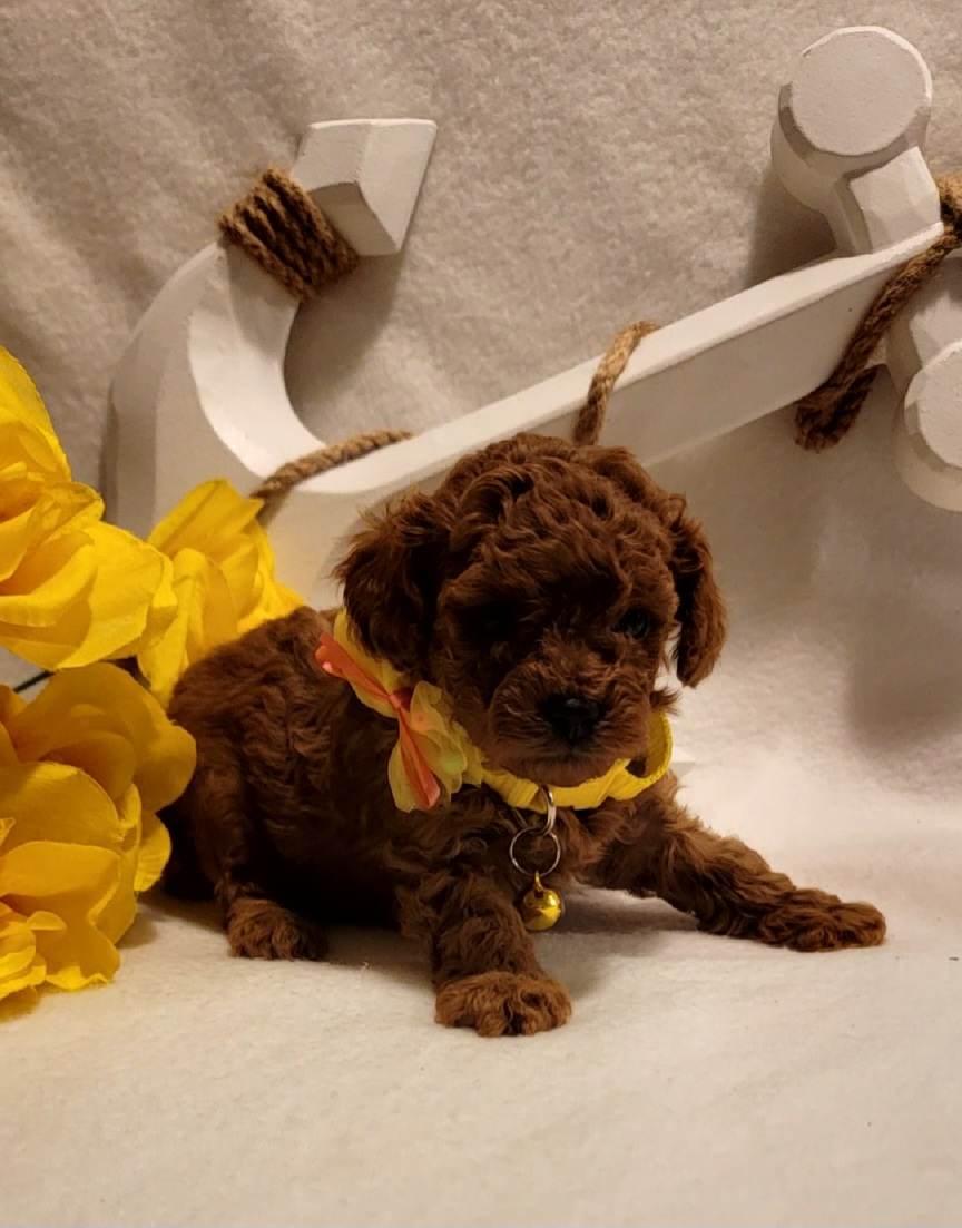 Our puppies include apricot, red, and white. Colors will vary depending on the parent dogs.
