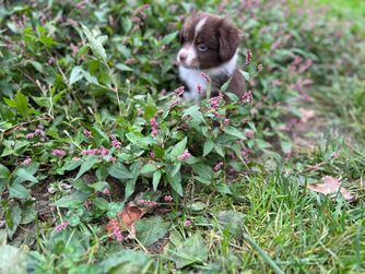 I got my Mini Aussie, Pico, from Mikaela and I’m obsessed! She was amazing to work with — kind, always kept me updated, and clearly cares so much about her pups. Pico came home happy, healthy, and full of personality. Couldn’t have asked for a better experience (or a cuter puppy)!