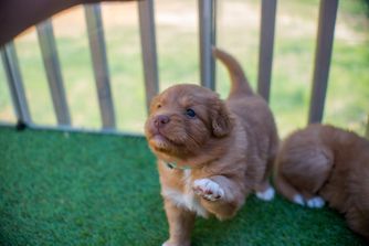 Spitfire Tollers breeds a fabulous sporting, conformation, and pet dog. She does excellent research to match the bitches with the best sire for each one. The work put in with these puppies on a daily basis shows when your puppy comes home. Between the genetics and time spent with the puppies the first two months of their life, these puppies come to new homes having already been exposed to people, children, other pets, wobble boards, tunnels, water, etc. Kelsey does an excellent job matching new puppies and their new homes. We could not be more pleased with our boy! Due to all the work she put in, he’s had an easy transition to his new home! We will definitely hope we are fortunate enough to get another Spitfire Toller in the future!