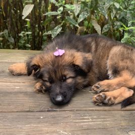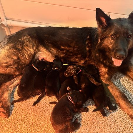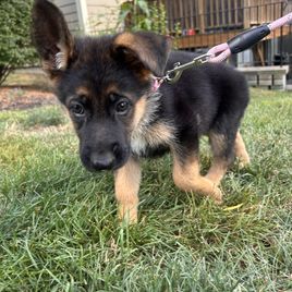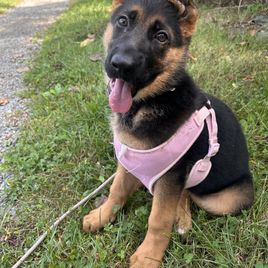 As a first time GSD buyer, had a great experience with Danielle. She was very responsive and sent picture/ video updates every week until we were finally able to pick up our little girl. Danielle is very knowledgable and also helped with pairing me and my husband with a puppy that would match our lifestyle. Bella was crate trained prior to us getting her which definitely helped. She is such a healthy & happy pup, and am thankful we have her through Danielle.