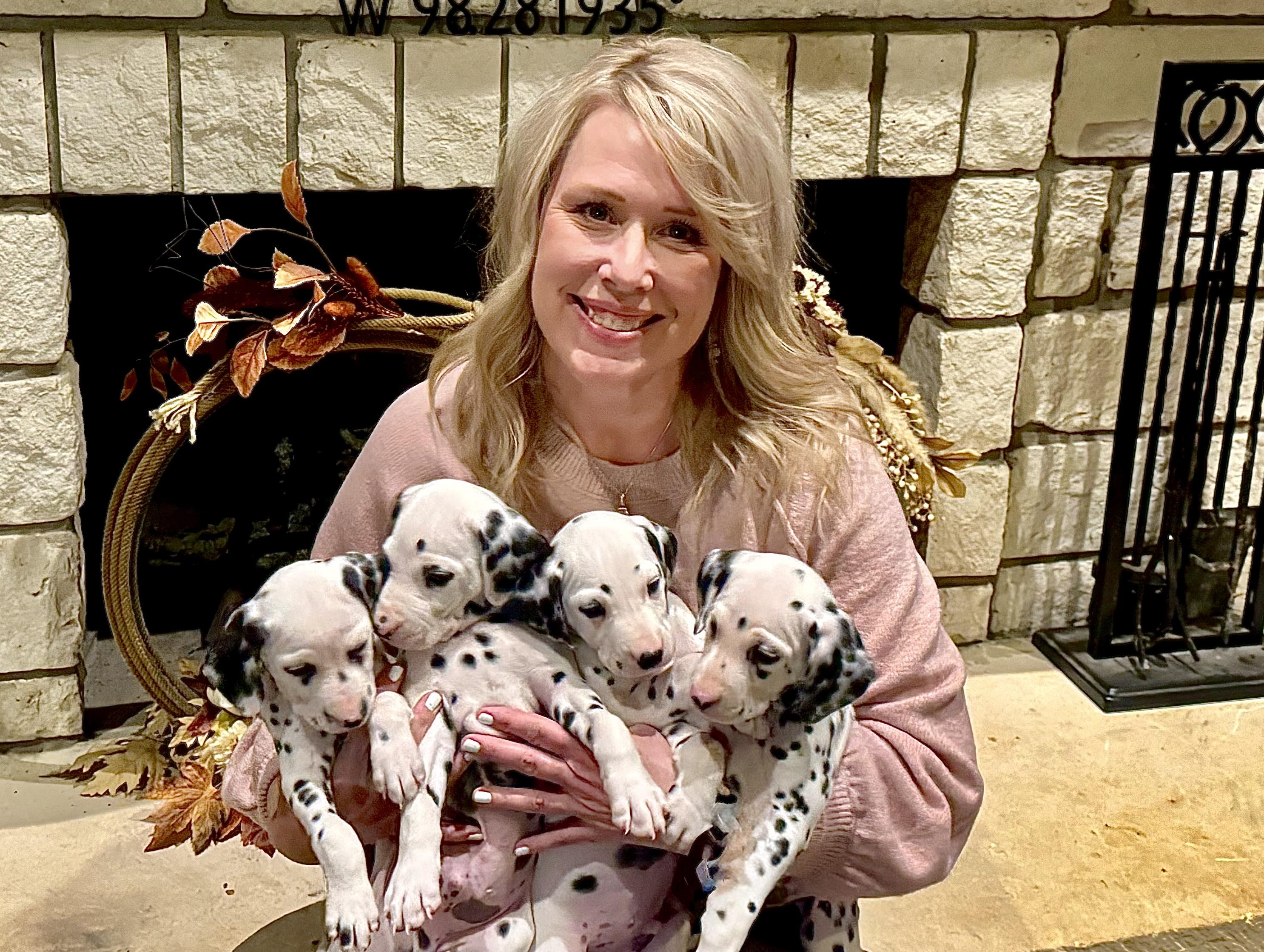 I'm Kristina F., the breeder behind Splendid Spots Dalmatians located in Stephenville, TX. We are proud to offer our beautiful Dalmatian puppies to loving homes! Our dogs are healthy and have great temperaments. We are a small, in-home breeding program where we prioritize giving each dog and puppy the best care that we can. We cherish all of our animals and enjoy sharing the love of a Dalmatian with other individuals and families!