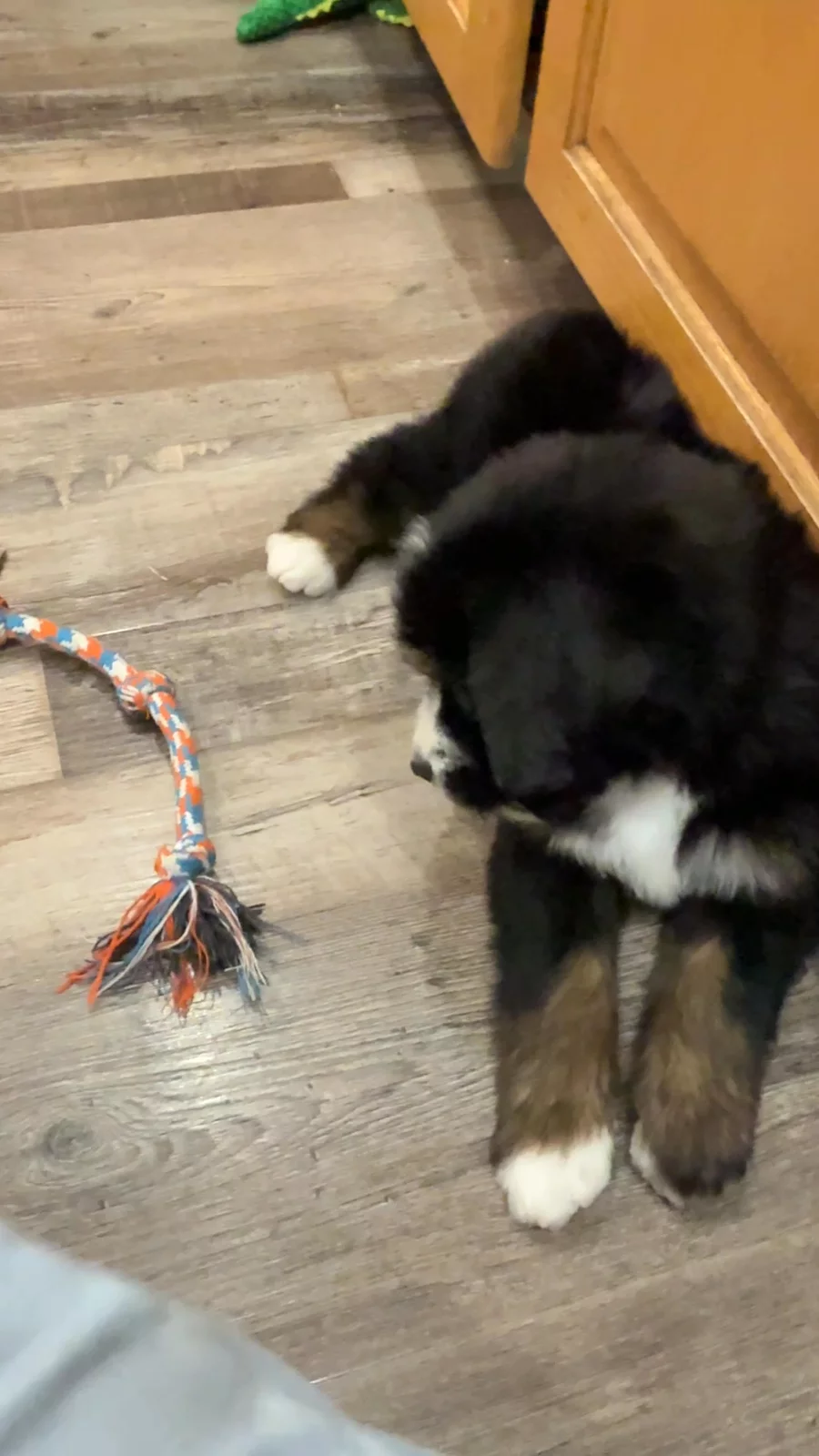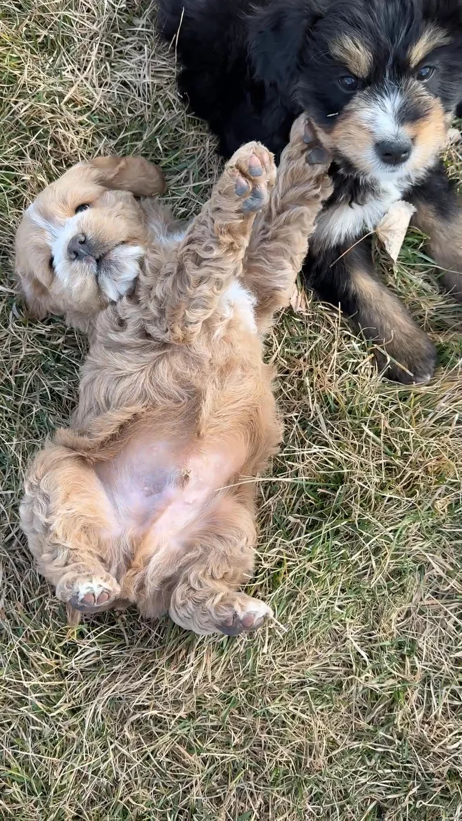 Tug is such a good dog. He loves to be outside and goes to all of our children’s sports games. If he knows we’re leaving anywhere in the car he runs right to the door to come with us. He loves people! He gets so excited when our kids friends come over and recognizes when there is a new face at our house. He loves to play with everyone. He is amazing at going in his crate at night. All we have to do is stand up and say crate and he’ll run right in there for the whole night. He loves going on walks, chasing birds and seeing other dogs. He has a lot of energy, but he also loves to snuggle and loves his belly rubbed. He is multigenerathonal, 53 % Bernese mountain dog 47% poodle to be specific. He weighs 30 lbs may get up to 35. He is 100% clear of genetic disorders. Ofa- Eyes -normal Heart- normal Patella Elbows Thyroid At/At, B/B, E/e, KY/KY, SS, no curl, F/F