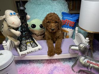 Our puppies include apricot and red. Colors will vary depending on the parent dogs.