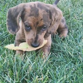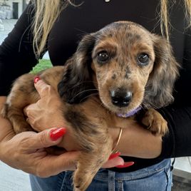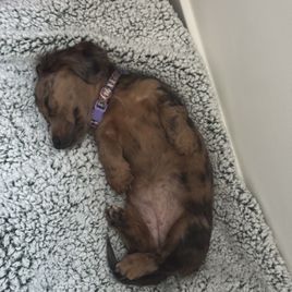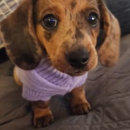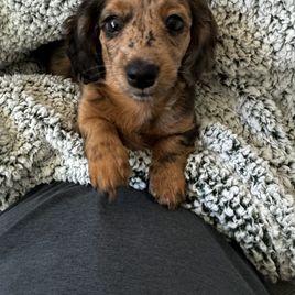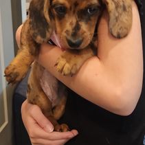 We couldn't be happier with our adorable dapple dachshund, Wendi, from The Spotted Doxie Ranch. After losing my dad in February, who had a beloved dapple dachshund, it felt right to bring a little joy into our lives in his memory. Anna and Steve met us conveniently in Denver for pickup, making the process smooth and easy. They provided a thoughtful selection of toys, food, and snacks for Wendi, demonstrating their genuine care for each dog. It’s clear that they love these little ones and are dedicated to responsible breeding. Highly recommend!