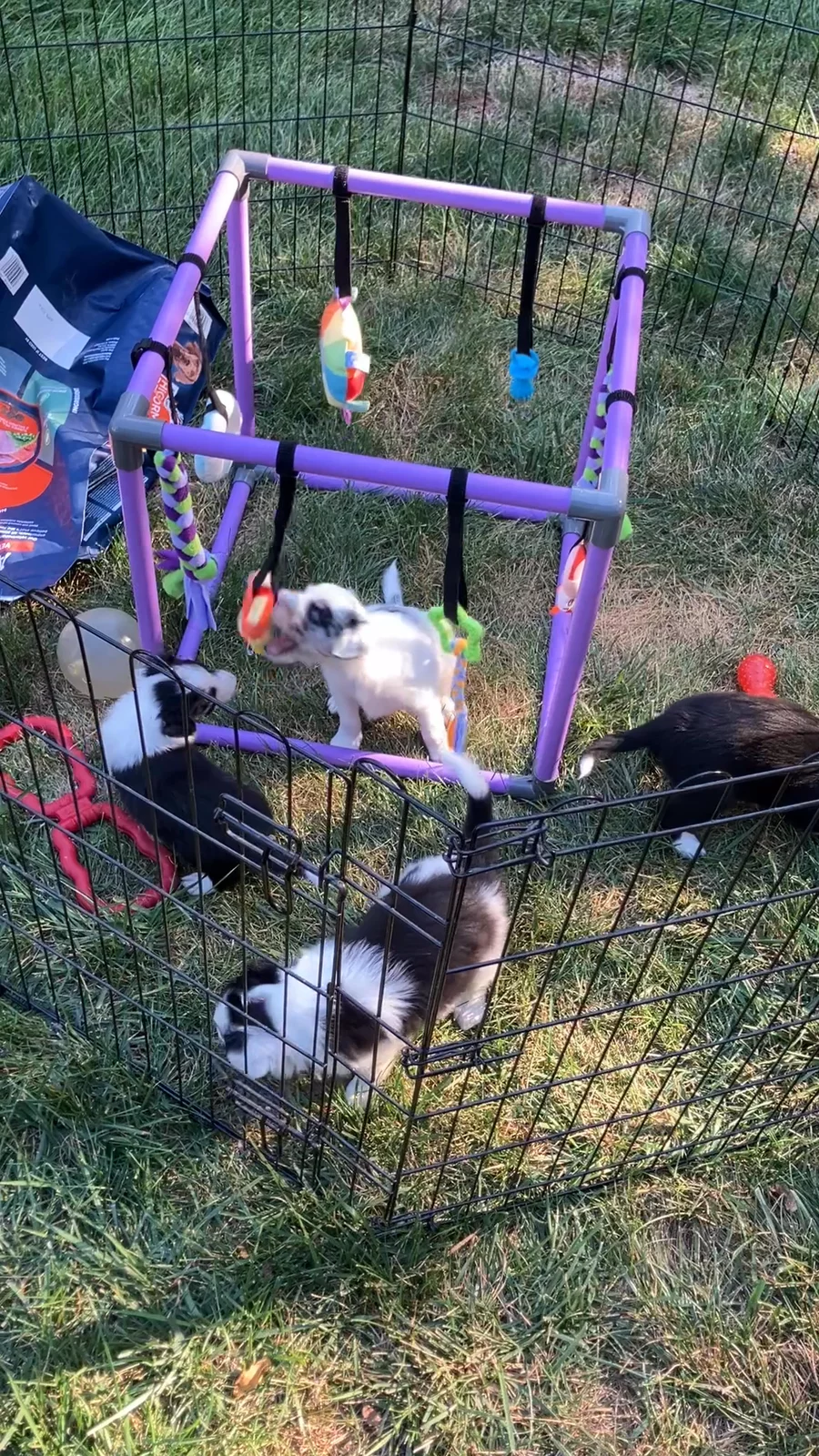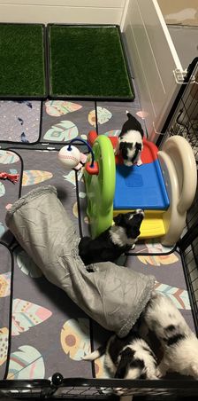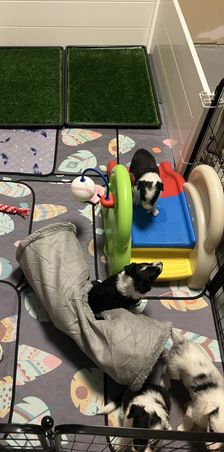 Puppies will be exposed to many textures, sights and sounds while on the farm. Everything from farm equipment to many animals like cats and horses.