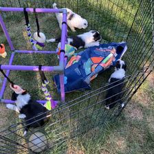 Our puppies include tri-color, black and white, blue merle, red merle, black, and red. Colors will vary depending on the parent dogs.